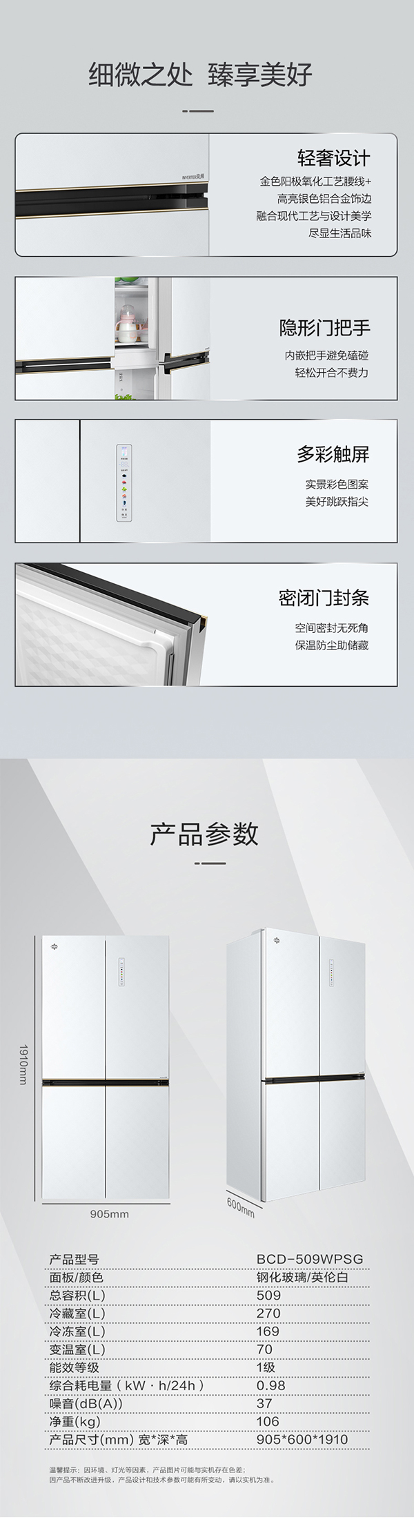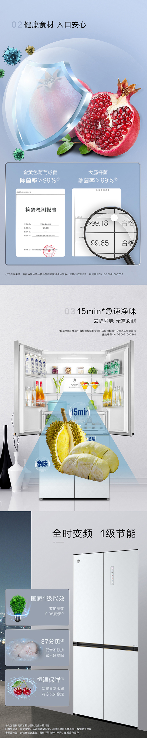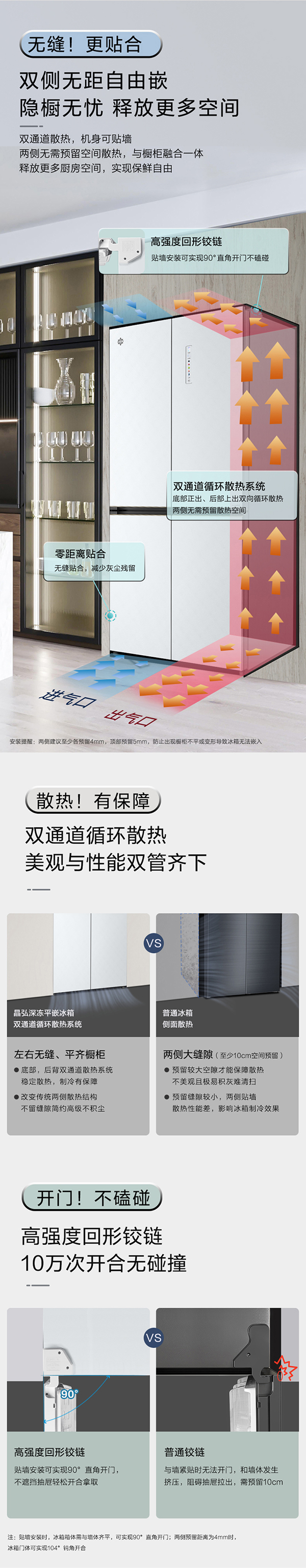 -33攝氏度深凍儲鮮;PLASMA全空間除菌凈味;平齊不凸出;雙通道循環散熱